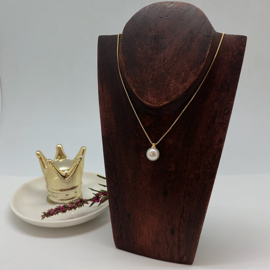 CO183 Collar con Colgante Perla Cadena Veneciana 1 mm Diá. Perla 10 mm Largo 40 cm más extensor 6 cm Collar Terminado Baño Oro