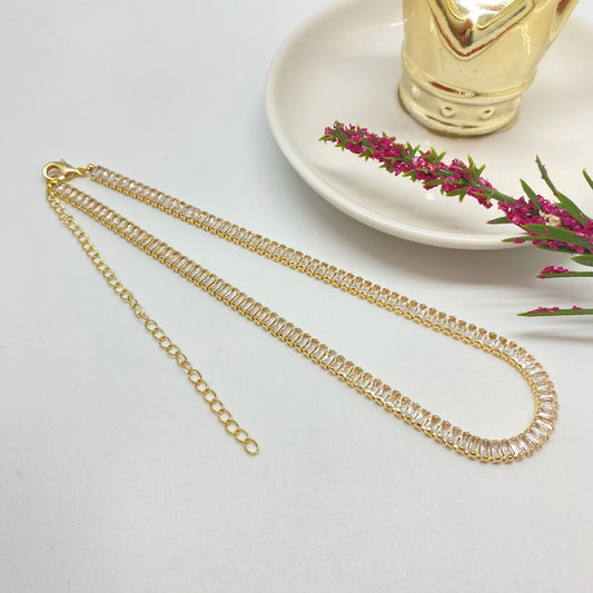 CO196 Collar Chocker Cristales Baguette Largo 30 cm más Extensor de 10 cm Ancho 4.5 mm Espesor 2.8 mm Collar Terminado Baño Oro