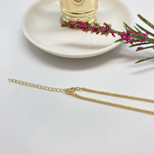 CO195 Collar Bolitas 2 mm Largo 40 cm más extensor 5 cm Cadena Terminada Baño Oro