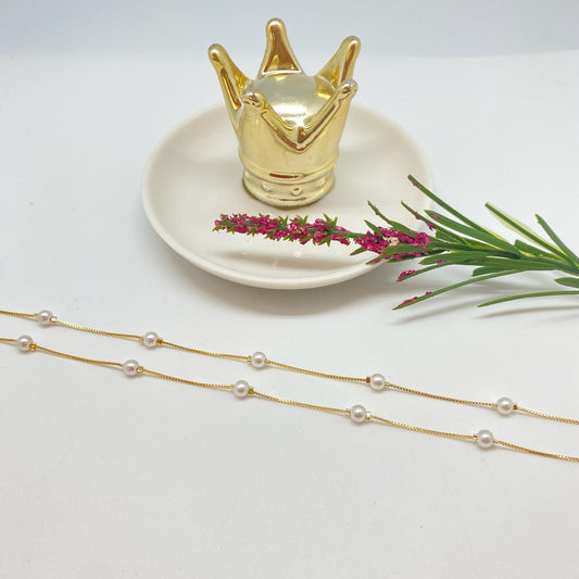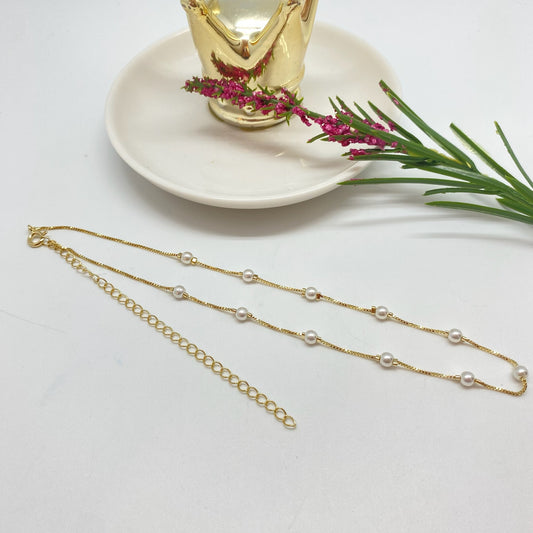 CO200 Collar Chocker Perlas Cadena Veneciana 1 mm Perlas 4 mm Largo 32 cm más extensor 10 cm Collar Terminado Baño Oro