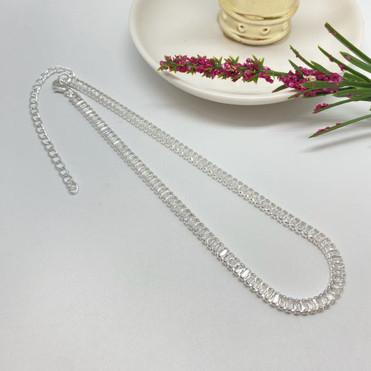 CP196 Collar Chocker Cristales Baguette Largo 30 cm más Extensor de 10 cm Ancho 4.5 mm Espesor 2.8 mm Collar Terminado Baño Plata Moo