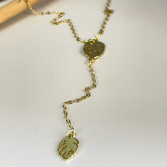 CO190 Collar Cascada Monstera Cadena candado eslabón 1.5 mm Largo 45 cm Monstera 17x10 mm Largo Cascada 7.4 cm Mini Monstera 12x8 mm Collar Terminado Baño Oro