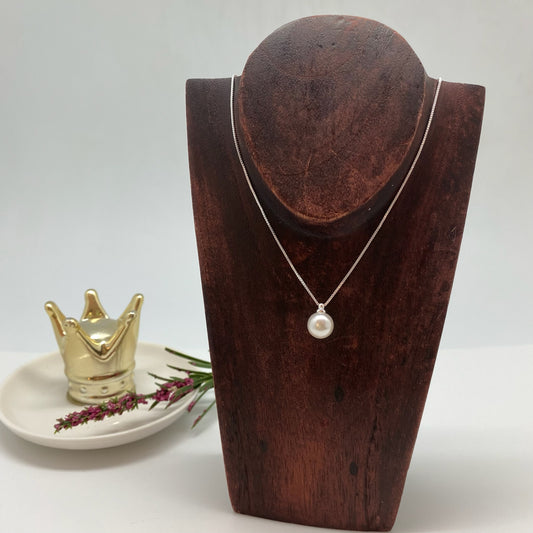 CP183 Collar con Colgante Perla Cadena Veneciana 1 mm Diá. Perla 10 mm Largo 40 cm más extensor 6 cm Collar Terminado Baño Plata