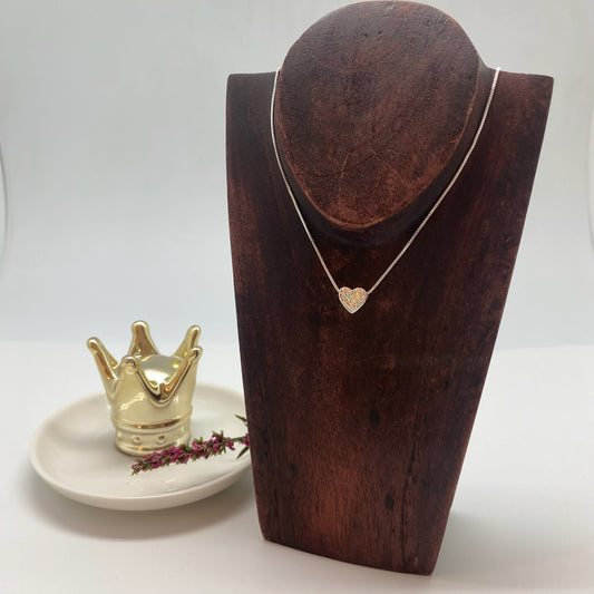 CP185 Collar con Corazón pasado Cadena veneciana 1 mm Corazón doble faz liso y martelado 10 mm espesor 4 mm Largo 40 cm más extensor 6 cm Collar Terminado Baño Plata