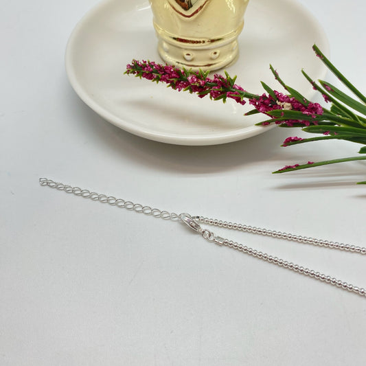 CP195 Collar Bolitas 2 mm Largo 40 cm más extensor 5 cm Cadena Terminada Baño Plata
