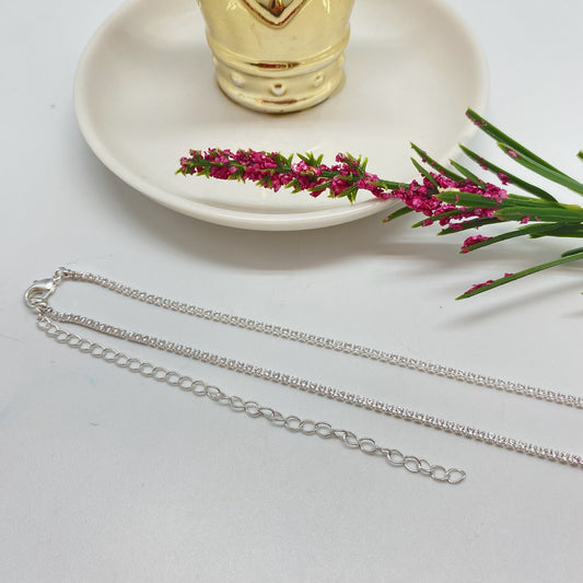 CP199 Collar Cristales Largo 38 cm más Extensor de 10 cm Ancho 1.8 mm Collar Terminado Baño Plata