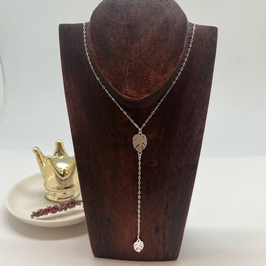 CP190 Collar Cascada Monstera Cadena candado eslabón 1.5 mm Largo 45 cm Monstera 17x10 mm Largo Cascada 7.4 cm Mini Monstera 12x8 mm Collar Terminado Baño Plata
