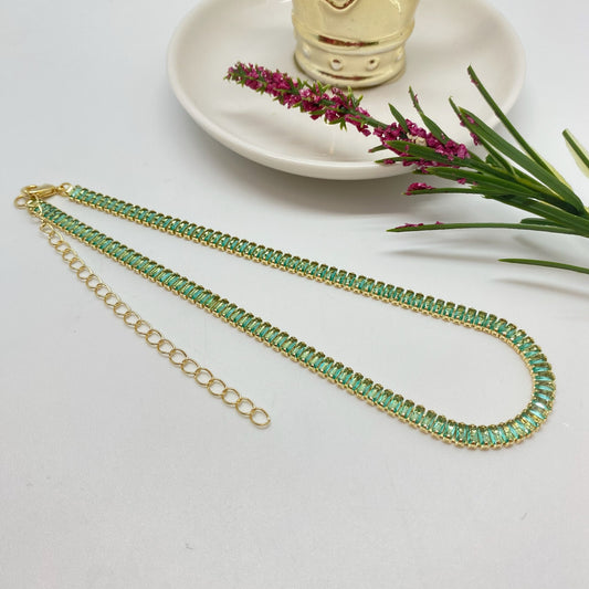 CO197 Collar Chocker Cristales Verde Light Baguette Largo 30 cm más Extensor de 10 cm Ancho 4.5 mm Espesor 2.8 mm Collar Terminado Baño Oro