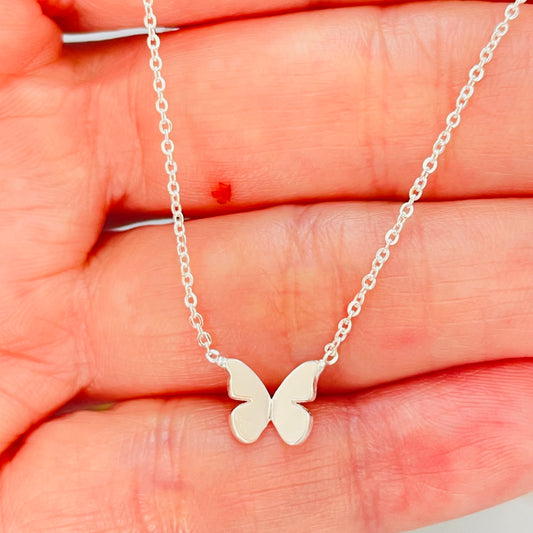 CP216 Collar con Mariposa de 7 x 7 mm Espesor 1 mm Cadena Candado 40 cm más extensor de 7 cm y terminal mini circón Collar Terminado Baño Plata