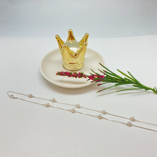 CP182 Collar Perlas Cadena Veneciana diá. 5 mm Largo 60 cm Collar Terminado Baño Plata