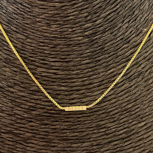 CO173 Collar Cascada Palito de 20x1.8 mm con circones Cadena veneciana Espesor 0.8 mm Largo 40 cm mas extensor Largo cascada 7 cm Collar Terminado Baño Oro