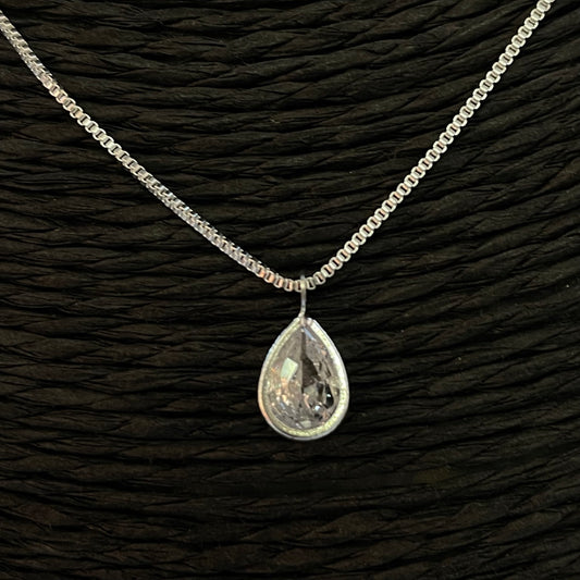 CP172 Collar con punto de luz gota 8 x 5 mm Cadena veneciana Largo 40 cm mas extensor de 5 cm espesor 0.8 mm Collar Terminado Baño Plata