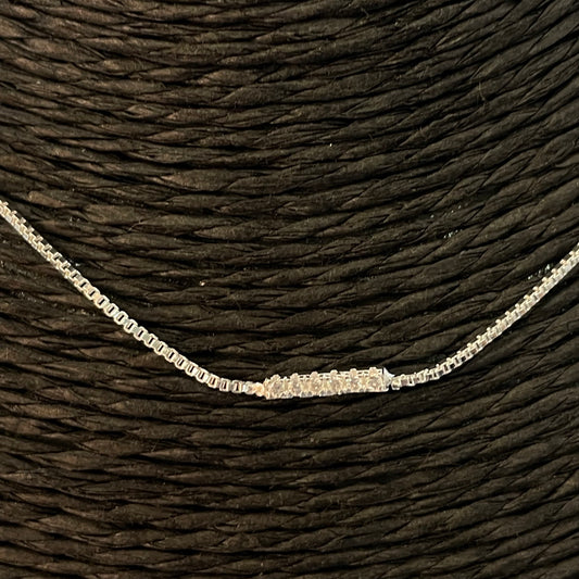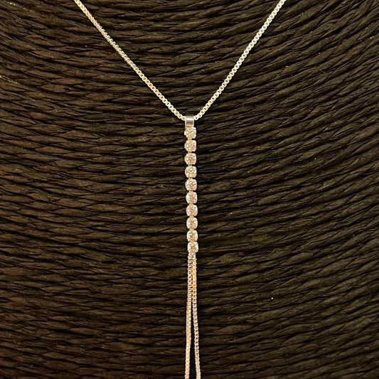 CP173 Collar Cascada Palito de 20x1.8 mm con circones Cadena veneciana Espesor 0.8 mm Largo 40 cm mas extensor Largo cascada 7 cm Collar Terminado Baño Plata