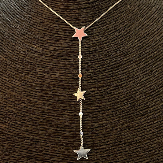 CO170 Collar Cascada Cadena Veneciana con 3 Estrellas dos de 10 mm y uno de 7 mm Largo 45 cm mas extensor Largo cascada 8 cm Collar Terminado Baño Oro