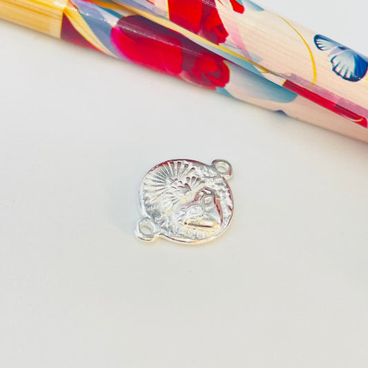 FP1160 Conector Detente Sagrado Corazón Rústico Diá. 12 mm más argollitas Espesor 1.5 mm Figura Baño Plata