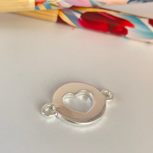 FP1129 Conector Redondo Corazón calado y argollitas 14 mm más argollitas Espesor 1.8 mm Figura Baño Plata