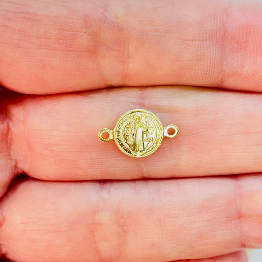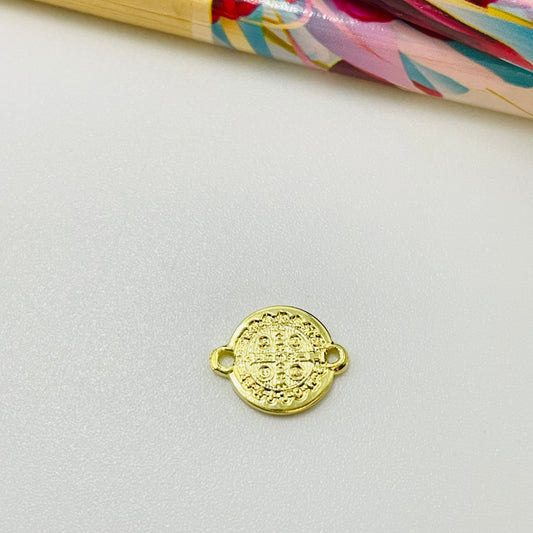 FO1180 Conector San Benito Diá. 9 mm mas argollitas Espesor 1 mm Figura Baño Oro