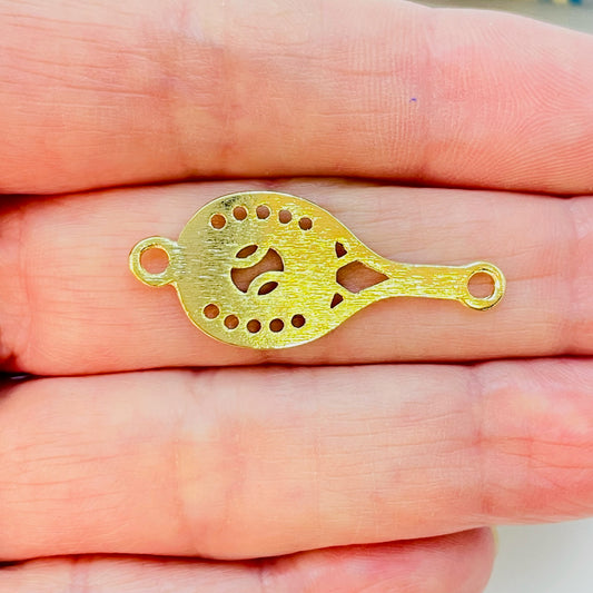 FO1128 Conector Ovalado Corazón Calado con perforaciones 12 x 20 mm Espesor 1.8 mm Figura Baño Oro