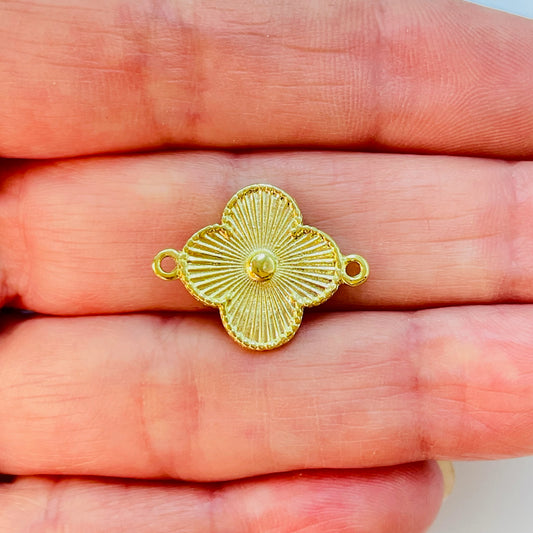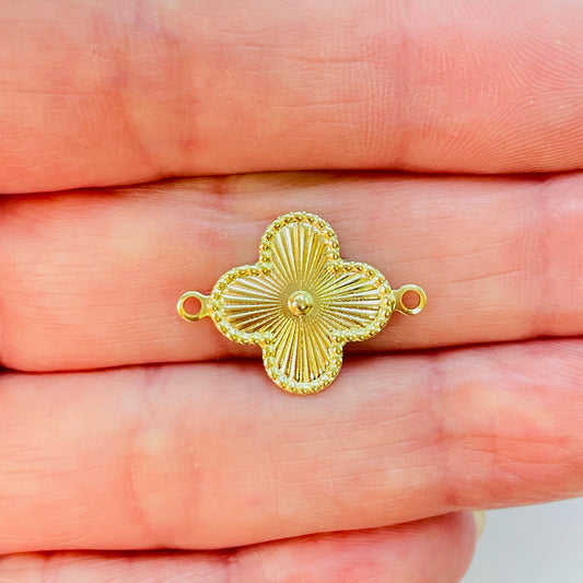 FO1179 Conector Small Trébol 4 hojas Punto Central en relieve líneas estampadas borde rutilado 15 mm más argollitas Espesor 0.8 mm Figura Baño Oro