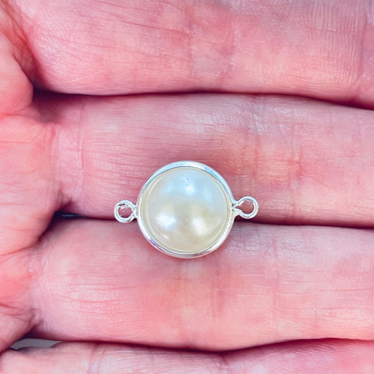 FP1181 Conector Perla Diá. 10 mm más argollitas Espesor 6 mm Figura Baño Plata