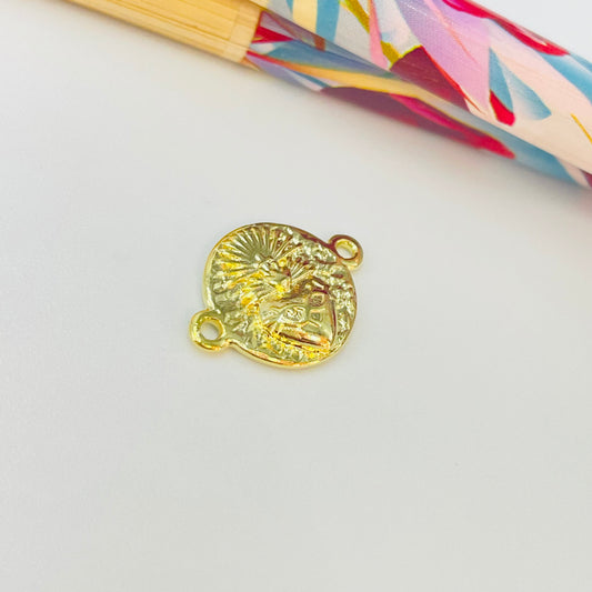 FO1160 Conector Detente Sagrado Corazón Rústico Diá. 12 mm más argollitas Espesor 1.5 mm Figura Baño Oro