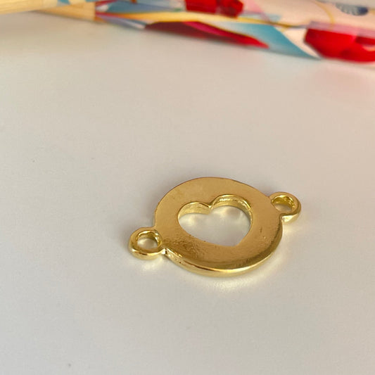 FO1129 Conector Redondo Corazón calado y argollitas 14 mm más argollitas Espesor 1.8 mm Figura Baño Oro