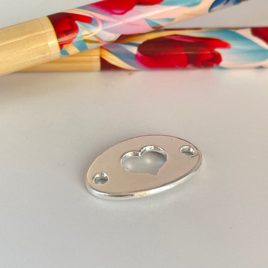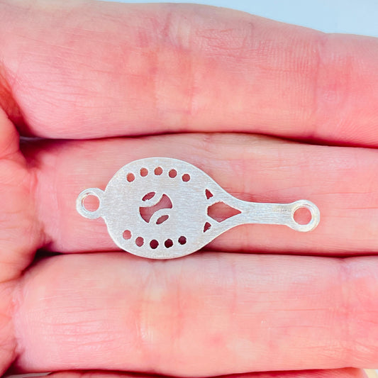 FP1128 Conector Ovalado Corazón Calado con perforaciones 12 x 20 mm Espesor 1.8 mm Figura Baño Plata