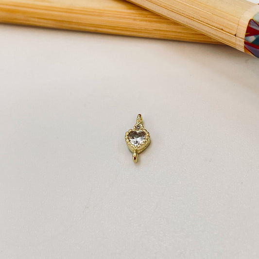 FO1071 Conector Mini Corazón Cristal y un mini circón borde rutilado 6 x 4 mm mas argollitas Figura Baño Oro