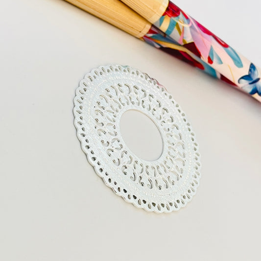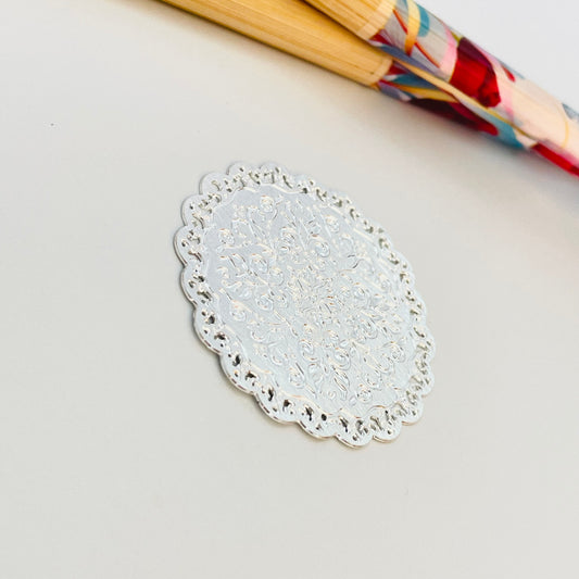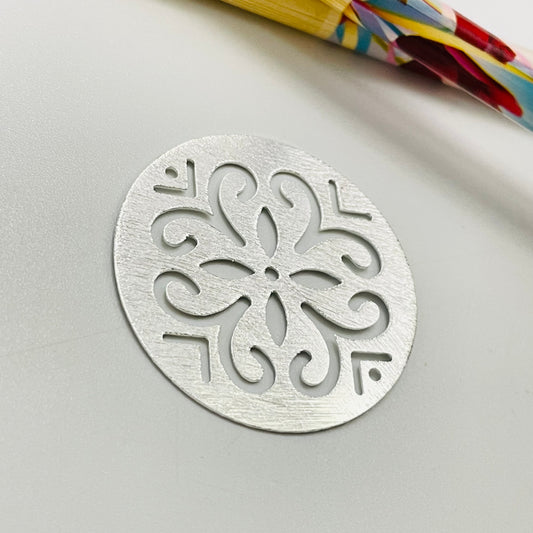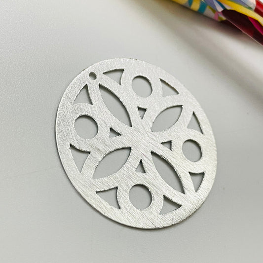FP1109 Colgante Estampado y Bordes Calados Lijado Perforación Superior diá. 36 mm Espesor 0.8 mm Figura Baño Plata