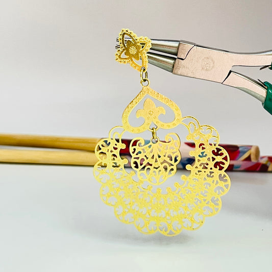 FO1108 Colgante Lijado Calado y estampado tipo andaluz con figura central libre 55 x 45 mm Espesor 0.6 mm Figura Baño Oro