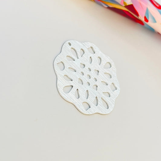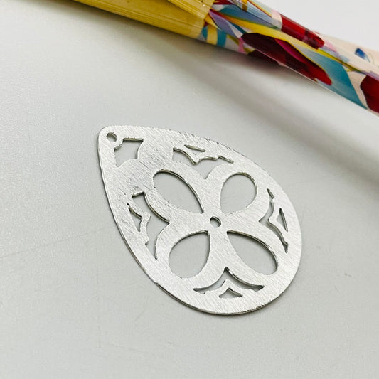 FP1096 Colgante Figura Calada Lijada Tipo Gota Flor 4 pétalos calada central 38 x 30 mm Espesor 0.8 mm Figura Baño Plata