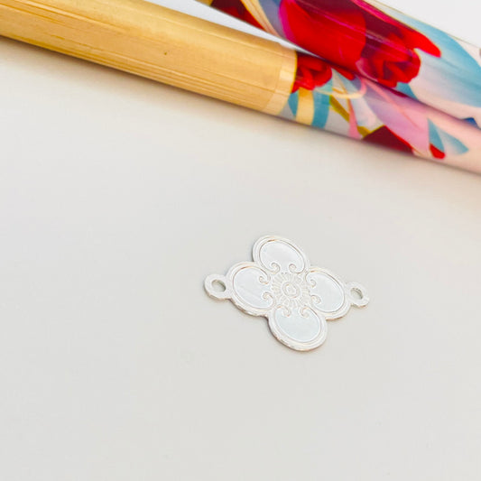 FP1103 Conector tipo trébol bordes y centro en relieve 13 mm más argollitas Espesor 0.8 mm Figura Baño Plata