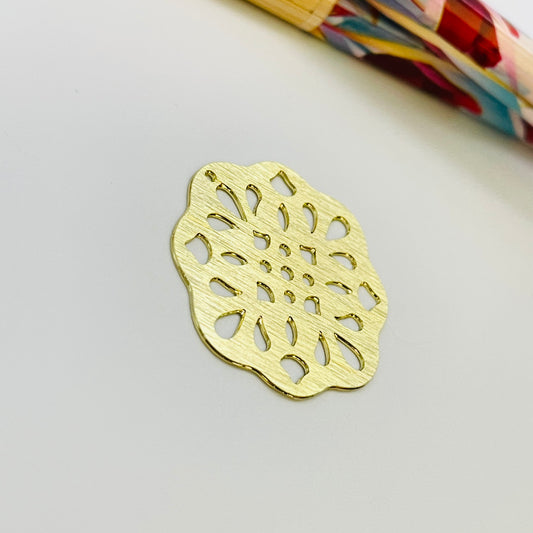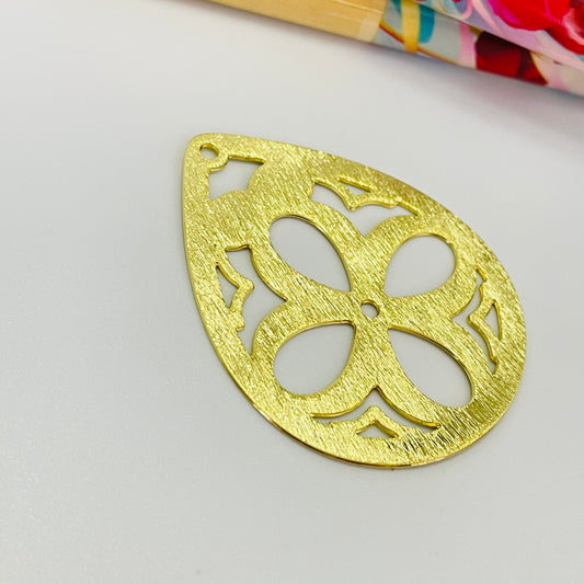 FO1096 Colgante Figura Calada Lijada Tipo Gota Flor 4 pétalos calada central 38 x 30 mm Espesor 0.8 mm Figura Baño Oro