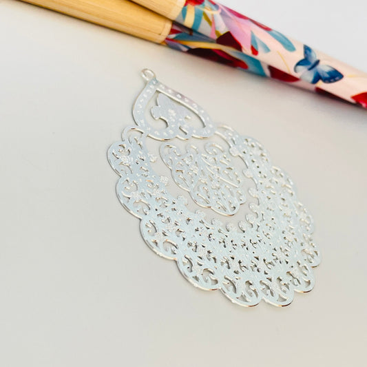 FP1108 Colgante Lijado Calado y estampado tipo andaluz con figura central libre 55 x 45 mm Espesor 0.6 mm Figura Baño Plata