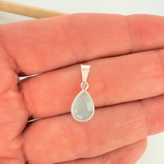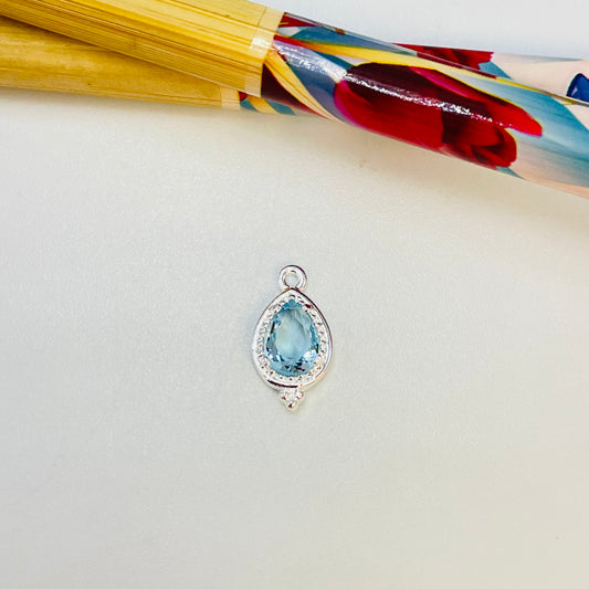 FP1162 Colgante Gota Cristal Color con borde 10 x 8 mm más argollita y valier de 7 mm Espesor 3.2 mm Figura Baño Plata