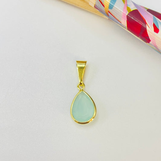 FO1162 Colgante Gota Cristal Color con borde 10 x 8 mm más argollita y valier de 7 mm Espesor 3.2 mm Figura Baño Oro