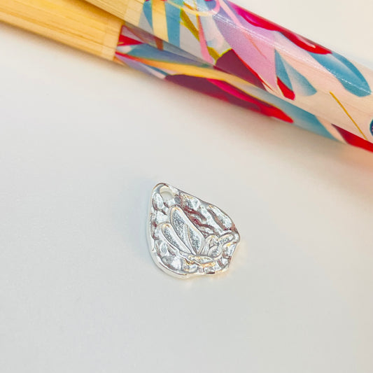 FP1158 Colgante Irregular Rústico Mariposa de lado con perforación 12.5 x 11 mm Espesor 1.5 mm Figura Baño Plata