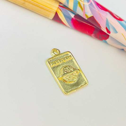 FO1155 Colgante Pasaporte 14.5 x 11 mm más argollita Espesor 1.2 mm Figura Baño Oro
