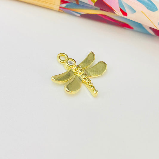 FO1156 Colgante Libélula con mini circón 13 x 16 mm más argollita Espesor 0.9 mm Figura Baño Oro