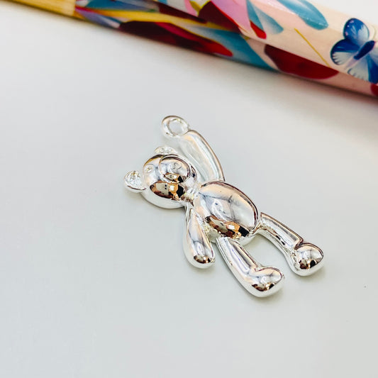FP1147 Colgante Oso con mano en alto 25 x 18 mm más argollita Espesor 4 mm Figura Baño Plata
