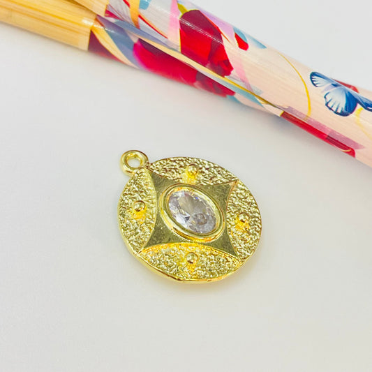 FO1146 Colgante Redondo Rústico Estrella 4 Puntas y Circón central Diá. 19 mm más argollita Espesor 1.5 mm Figura Baño Oro