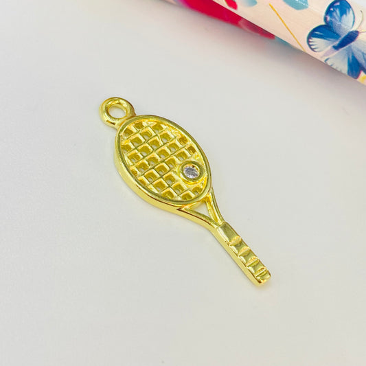 FO1149 Colgante Raqueta con mini circón 25 x 10 mm más argollita Espesor 1.5 mm Figura Baño Oro