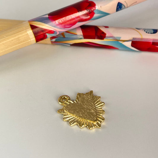 FO1137 Colgante Corazón Gordito Lijado Bordes Rayos 14 x 14 mm más argollita Espesor 3 mm Figura Baño Oro