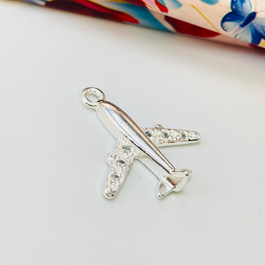 FP1145 Colgante Avión con circones en alas 10 x 20 mm más argollita Espesor 3 mm Figura Baño Plata