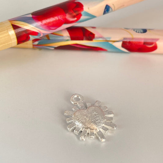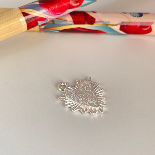 FP1137 Colgante Corazón Gordito Lijado Bordes Rayos 14 x 14 mm más argollita Espesor 3 mm Figura Baño Plata