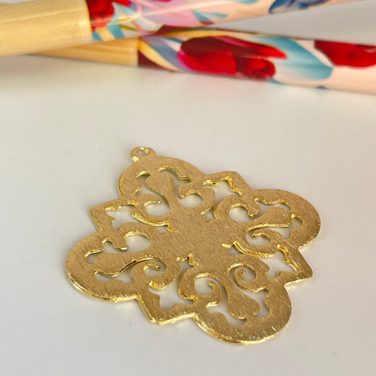 FO1140 Colgante Figura Calada Lijada Diseño azulejo portugués 35 x 35 mm más argollita Espesor 1.1 mm Figura Baño Oro