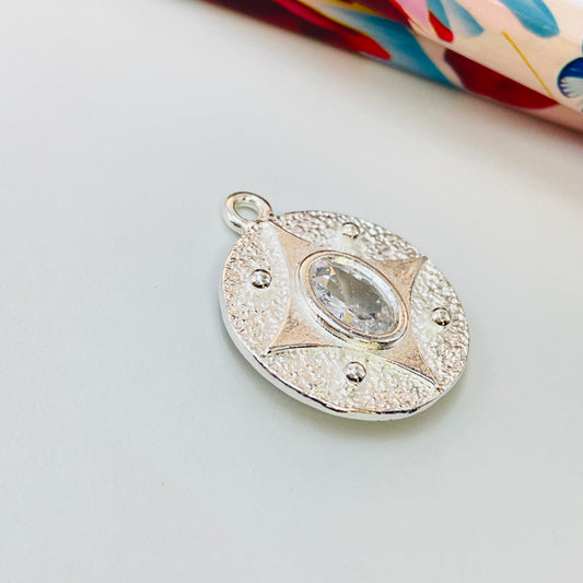 FP1146 Colgante Redondo Rústico Estrella 4 Puntas y Circón central Diá. 19 mm más argollita Espesor 1.5 mm Figura Baño Plata