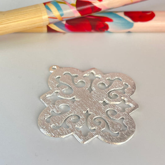 FP1140 Colgante Figura Calada Lijada Diseño azulejo portugués 35 x 35 mm más argollita Espesor 1.1 mm Figura Baño Plata