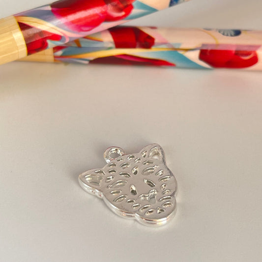 FP1139 Colgante Jaguar Calado Chico 14 x 15 mm más argollita Espesor 1.5 mm Figura Baño Plata