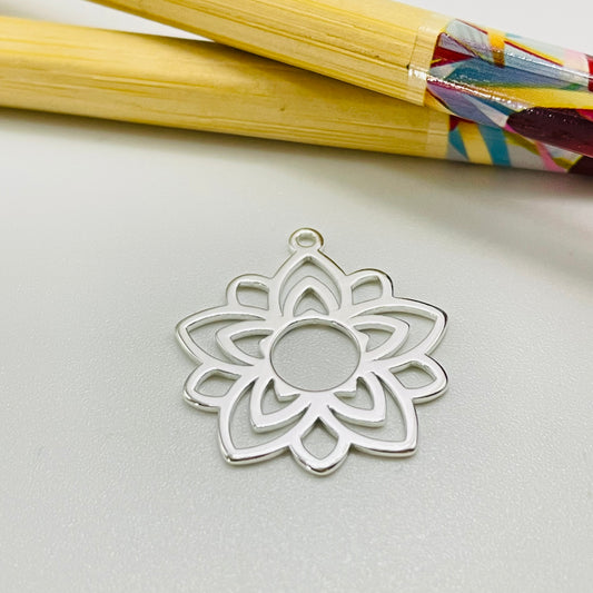 FP1102 Colgante Tipo Mandala Flor Calada diá. 20 mm más argollita espesor 1 mm Figura Baño Plata